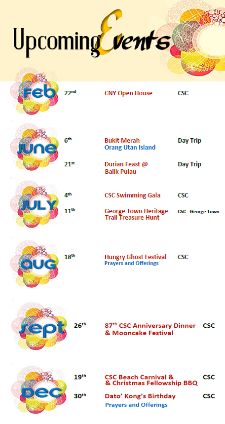 - It shall organize the Club Dinner, Chinese New Year celebration and Chinese Mid Autumn festival annually.